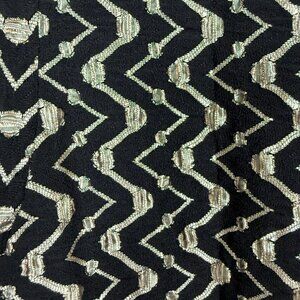 Evan-Picone Cowl Neck Dress Sz 16 Short Sleeve Ruched Zigzag Black Gold