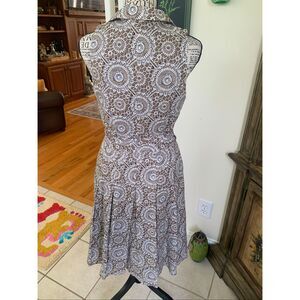 Evan-Picone Dandelion Medallion Print Shirt Dress SZ 4 Light Cotton 50s Style. This vintage-inspired Evan-Picone shirt dress is a must-have for any fashion-forward woman. The dandelion medallion print and midi length make it perfect for a 50s-themed party or a casual day out. The light cotton material ensures comfort and breathability, while the brown color adds a touch of elegance. The dress is a size 4. Lined with full shirt that accents the waistline. Gorgeous. The dress length is midi, making it versatile for any occasion. Elevate your wardrobe with this timeless piece from Evan-Picone. Size 4 Measurements 35” bust 29” waist 46” hips 42” length