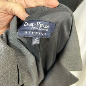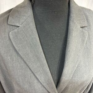 This Evan Picone blazer in a sophisticated gray hue features a classic notched lapel and a tailored fit, making it an ideal choice for professional settings. Its structured shoulder line and formal suiting material ensure a polished and refined appearance.