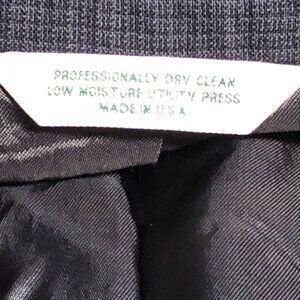 This Evan-Picone suit jacket embodies classic sophistication. Tailored from pure wool, its dark gray houndstooth pattern adds subtle texture. The Kaufmann's Pittsburgh label speaks to its heritage and quality craftsmanship. Made in the USA, this single-breasted jacket is an essential addition to a refined wardrobe, combining timeless style with versatile elegance.