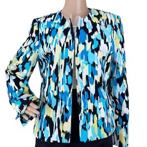 Evan-Picone Multicolored Open Front Padded Shoulder Collarless Blazer Jacket 10