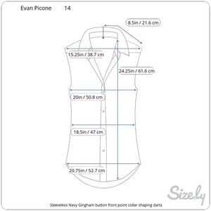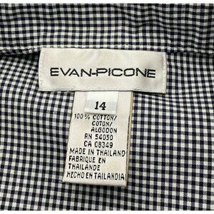 Evan-Picone Navy Gingham Sleeveless Button-Up Blouse Point Collar Size 14