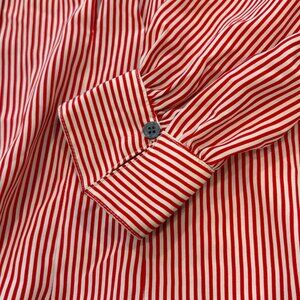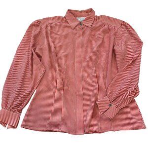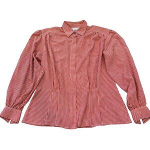 Evan-Picone Petites Vintage Red & White Striped Button-Up Long Sleeve Shirt Size