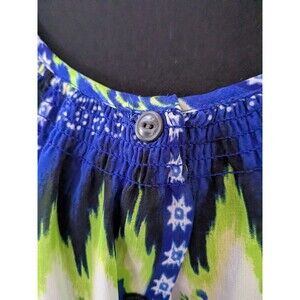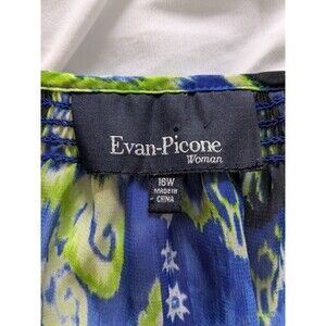 Evan-Picone Semi-Sheer Blouse Women's 16W Abstract Boho Print Royal Blue Lime