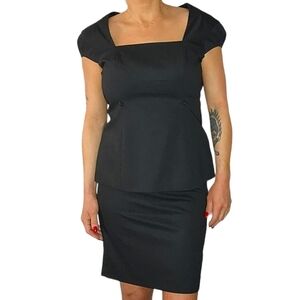 Evan-Picone Size 4 Black Peplum Midi Dress Pleated
