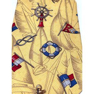 Evan-Picone Sport Nautical Yacht Club Yellow Tie 100% Silk Anchors Flags Men's