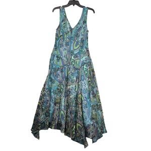 Evan-Picone Sz 14 Sheer Overlay Paisley Fairy Sleeveless Maxi Dress Asymmetrical