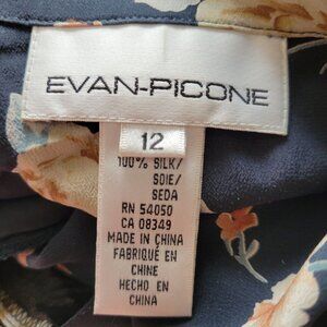 Elegant floral silk blouse from Evan-Picone, designed with a button-up front and long sleeves. Ideal for professional settings or casual elegance.