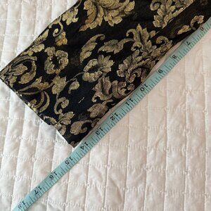 This Evan-Picone brocade blazer jacket combines sophistication with a striking gold and black floral design. Tailored for a polished look, it is ideal for formal or professional settings. The intricate detailing and luxurious fabric ensure a standout appearance.