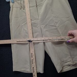Evan-Picone women's shorts in a 4P size offer a perfect blend of style and comfort. Made from 11% polyester blend, these beige shorts are a solid pattern with Bermuda style pockets and a button zip feature.