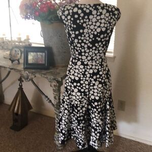 Evan Picone Black with Ivory Random Polka Dots Fit and Flare Dress