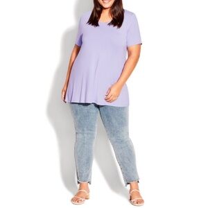 The Love Me Top Tunic Tee is a relaxed style that's perfect for your curves and comes in a pretty lilac color by Evans from Avenue. The short sleeves and classic V-neckline make it super comfortable, while the soft stretch fabric ensures a great fit.