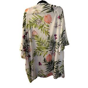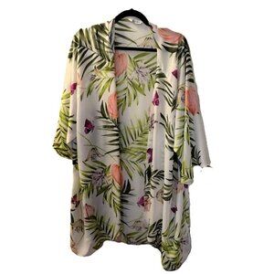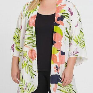 Evans Plus Size 18/20 White Tropical Floral Butterfly Duster Kimono Cover-Up