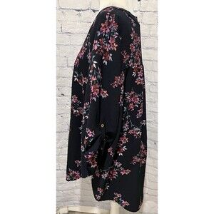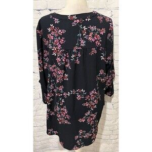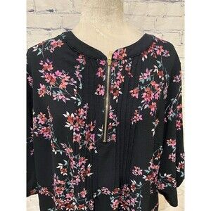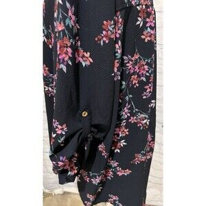 The Evans Plus Size Floral Roll Tab Sleeve 1/4 Zip Blouse Top in size 20 is a stylish and versatile piece perfect for a variety of occasions. Made from polyester, the black floral pattern gives it a chic and feminine look. The 3/4 roll tab sleeves and 1/4 zip closure add a touch of sophistication. As a plus size top from the brand Evans, it is designed specifically for women looking for a comfortable and flattering fit. This tunic-style blouse is ideal for traveling, casual outings, workwear, or business settings. 25 inches pit to pit and 27 to 31 inches long. Smoke free home.