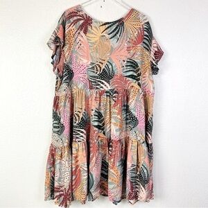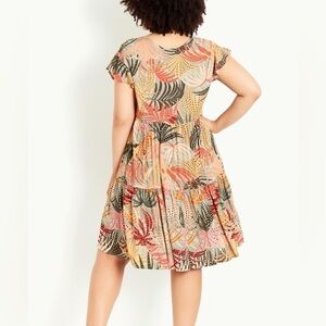 Evans Tropical Windown Tiers Flutter Sleeve Dress Size 22/24