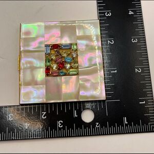 This MOP and Rhinestone compact is in great condition. It is beautiful and will fit in any purse.