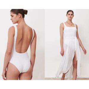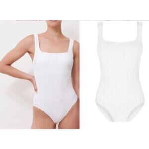 Evarae Cora Swimsuit Women’s M White Textured One Piece Square Neck Minimalist Luxe