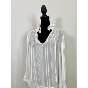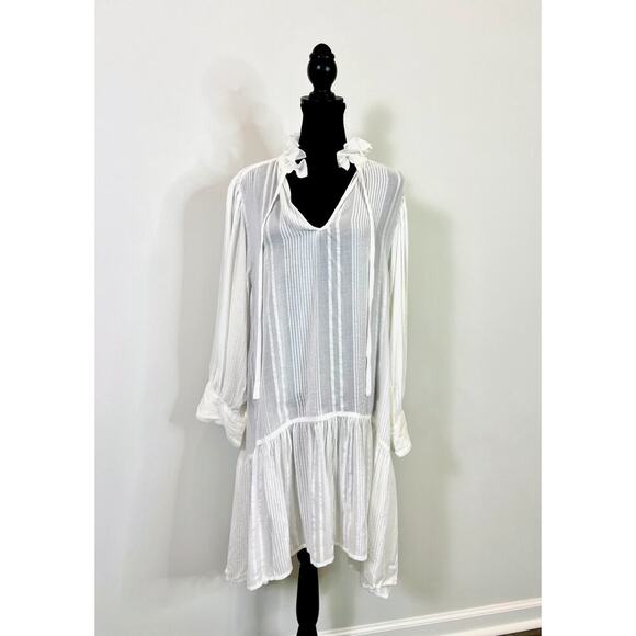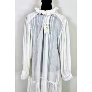 Evarae Loli Mini Dress in White Striped Large Ruffle Long Sleeve Boho Classic