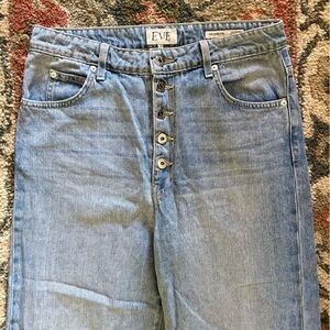 The Charlotte Culotte is Eve’s signature silhouette, instantly recognizable by her logo silver button fly accentuating the high rise waist. Originally inspired by a 1930s sailor pant, the Charlotte pairs that iconic wide leg cut with a lightweight, rigid denim that looks straight out of 1973. The result is a timeless piece with an heirloom feel, like it’s been passed down a couple generations—perfectly kept, and a perfect fit. Made with Cone Denim MillsTM denim sewn with contrast golden wheat thread, this is a traditional 5-pocket jean that’s at once durable and feminine. Her sleek back pockets elevate and flatter the hips.