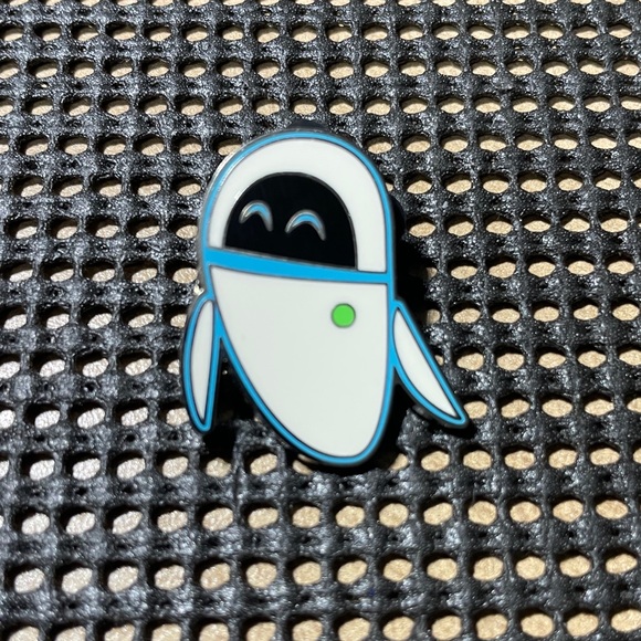 Disney Eve robot from Wall E enamel pin with a white and black design. Perfect for adding a touch of fun to any outfit.