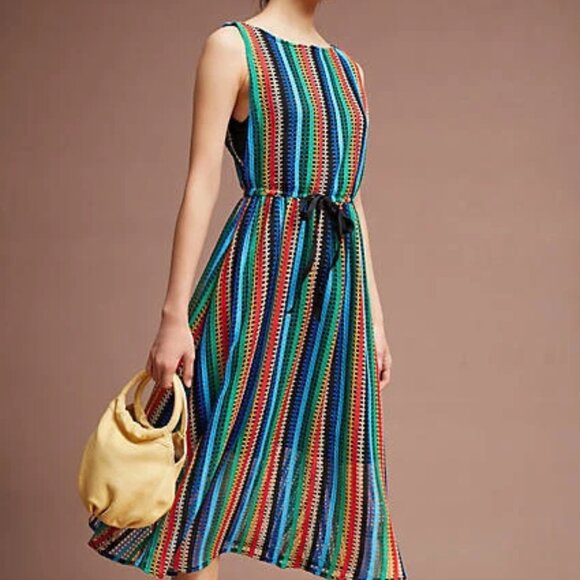 Eve Franco X Anthropologie Rainbow Crochet Midi Dress NWOT Size 0 (XS)