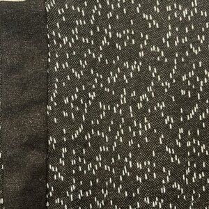 Sleeveless, round neck, speckled dot pattern, some stretch, lined.