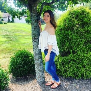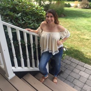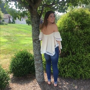 Cold shoulder laced top // absolutely stunning and perfect for a day out with a nice sandal or a wedge to dress it up // very flattering! // model is a small wearing a small! Runs true to size!