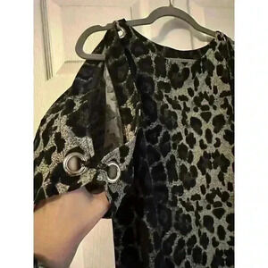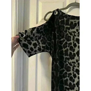 Eve & Maddie Blouse M Shortsleeve Black Gray Leopard Cold Shoulder