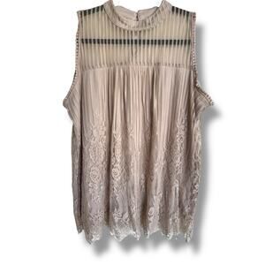Eve & Maddie Womens Tank Beige Lace Mock Neck Size XL