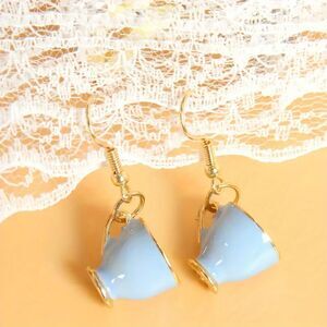 "Evelyn" Pale Blue and Gold Tea Cup Dangle Earrings