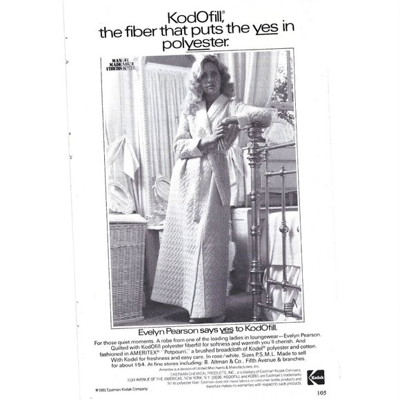 Evelyn Pearson KodOfill Kodak Polyester Fashion 1980s Vintage Print Ad 9 inch