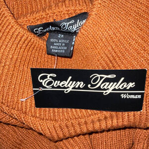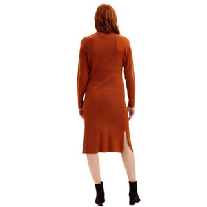Evelyn Taylor Women’s Burnt Orange Ribbed Mock Neck Sweater Dress XL/1X/2X