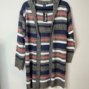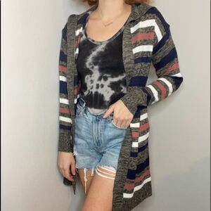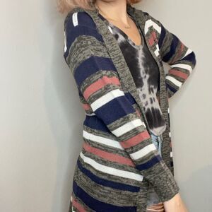 Evelyn Taylor Striped Hooded maxi Cardigan Sweater
