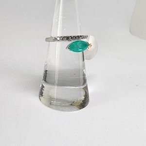 Lab created Blue Aragonite fused with Genuine Quartz. solid sterling silver and triple rhodium plated size 6