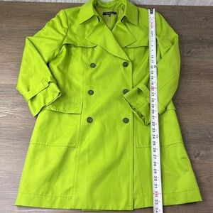 Even Picone Women’s Spring Lime Button Up Jacket, size Large. In good used condition- a tiny mark on the front shown in picture and a little on the bottom of the right sleeve- also shown in picture. Both would probable come out in wash- other than that it is in excellent used condition. See pictures for measurements and fabric content.