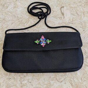 Evening Bag, Small Black Bag with Multi Colored Rhinestones