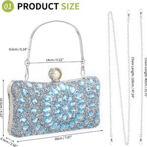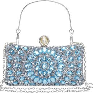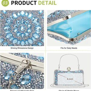 Evening Bag Women Sparkly Rhinestone Clutch Purse Light Blue Versatile
