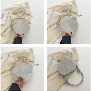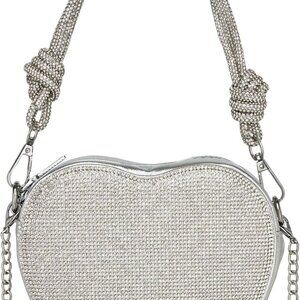 Evening Bag for Women, Silver Purse Heart Shaped Purse Crossbody Bags Shoulder H
