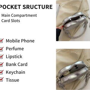 Applicable Occasions: The silver crossbody purse is perfect for scene shooting, parties, proms, banquets, dating, weddings, night trips and so on