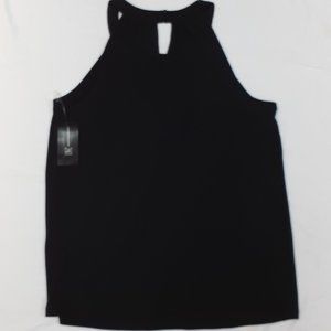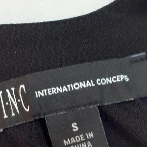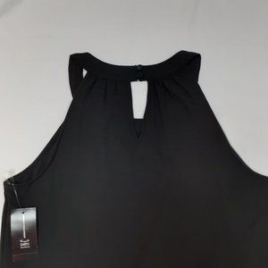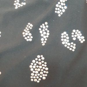Deep Black knit blouse with silver studded beads. Bare shoulders and high close neck fit. Great formal evening look or dress up jeans for the evening with this top.