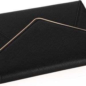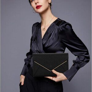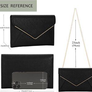 Features: Crafted from fine faux Saffiano leather, this fold-over envelope clutch is accented with classy gold-tone hardware and lined in soft twilling fabric. It offers two spacious compartments plus a zipper pocket, so you'll have room for your phone, cards, and essentials. The magnetic front flap keeps everything secure, and the included removable chain gives you versatile styling—wear it as a crossbody, shoulder bag, or clutch for a sleek, elegant look.