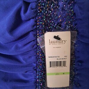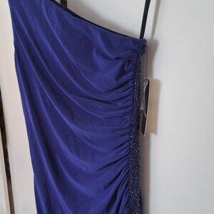 Long And Bright Blue Dress. Elegant And Beautiful, The Cut And The Strip On The Side Gives A Great Shape To The Waist. Body-Skimming Fit Through Bust And Waist; Relaxed Fit Through Hips. Slight Stretch Through Bodice And Waist; Mid Stretch Through Skirt. Only Worn For One Wedding, I Love It But I Was The Maid Of Honor, Which Meant Too Many Pictures On It