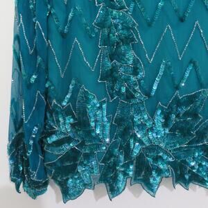 Evening Entry Womens Sz M Teal Vintage 100% Silk Beaded Sequin Top Formal Blouse
