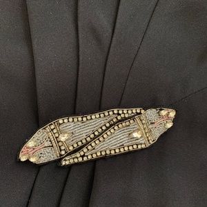 Elegant off one shoulder evening gown with beaded and jeweled appliqué at waist. Interior corset construction. Worn 1x.