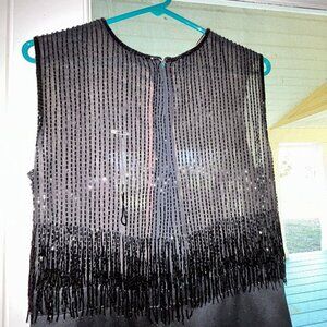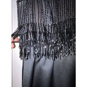 Evening Gown Long Black Beaded Bodice and Fringe, Sleeveless Dress Women’s 8-10