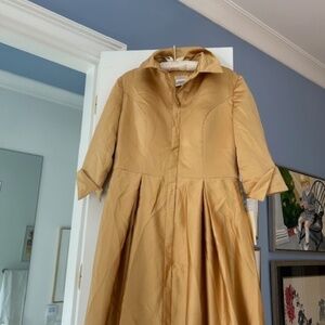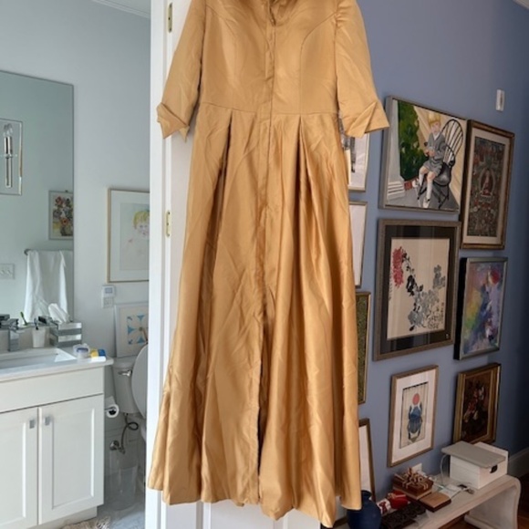 Beautifully made in China. It is traditional and feminine, fully lined and with a built in bra and slight boning. It is long enough for a very tall wearer. It comes with a sash long enough to be tied into a large bow, and it has two deep pockets. It is apparently made by a company that provides gowns to Terri Jon, because some of the same photos and models appear in ads for both companies.