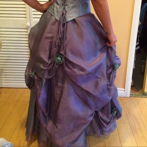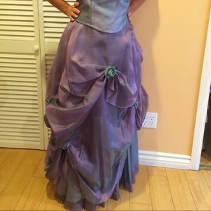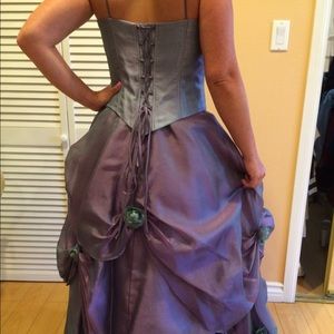 Beautiful even dress. Can fit size 6,8,10 because of the adjustable sexy corset top. One piece.