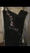 Cache brand size 2. Black evening gown with pink flowers embroidery. Strapless with inner bra. Worn 1 time.