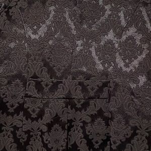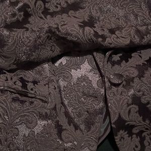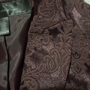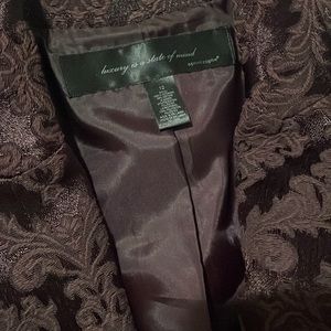 Beautiful plum colored jacket with ornate detailed embroidery. One button.