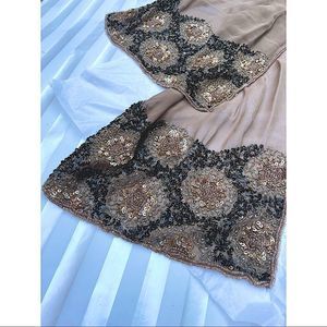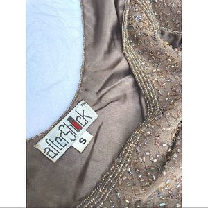 Sleeveless cocktail dress sparkling shiny classy nude light brown beads sequin sexy beautiful